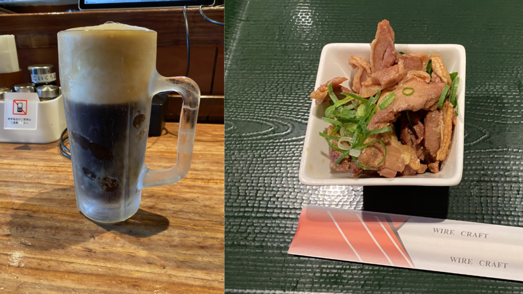 まず絶対に注文してほしいのが黒ビール(中)です!!ジョッキが冷たく泡が凍っているほどで、今まで飲んだビールの中で過去一美味しかったです!思わず5杯も飲んでしまいました!おつまみもすべて美味しく、特にひねぽんが絶品でした!