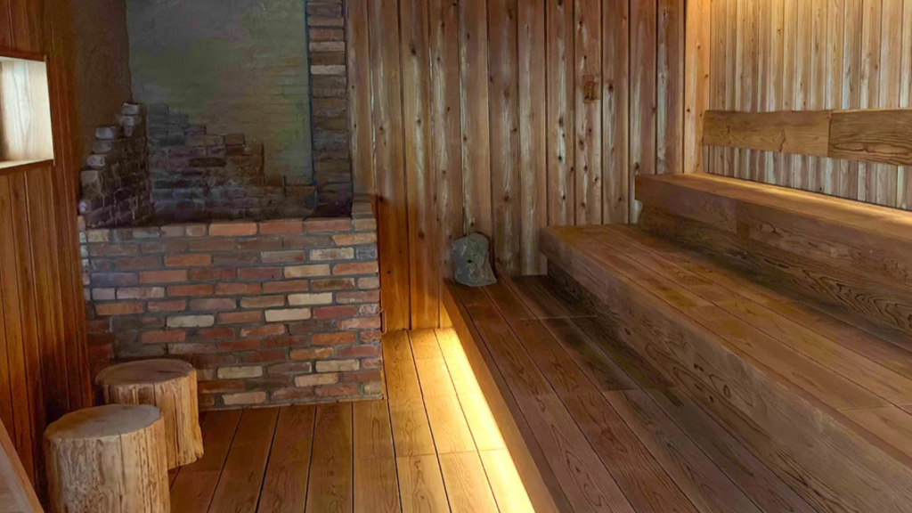フィンランドから木材の宝石と呼ばれる「ケロ材」を取り寄せ、本場フィンランドのサウナ小屋を再現しています。ケロ材とは樹齢200年以上の欧州赤松が100年ほど立ち枯れしたもので、非常に希少な木材です。その高級感は見た目からも伝わってきます!