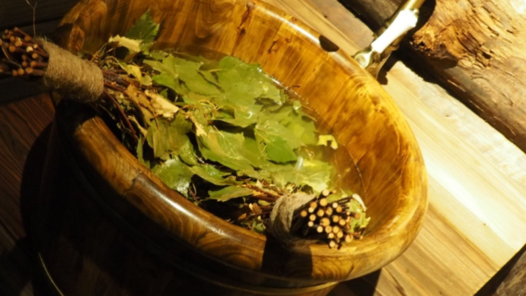 2つ目はヴィヒタ(Vihta)です。白樺などの枝葉を束ねたもので、サウナ室入口横に置いてあります。サウナで十分に体を温めた後に体に当てるとよい香りが広がり、血行促進効果も期待できます!ただしヴィヒタはサウナ室内では使用不可なのでご注意ください!
